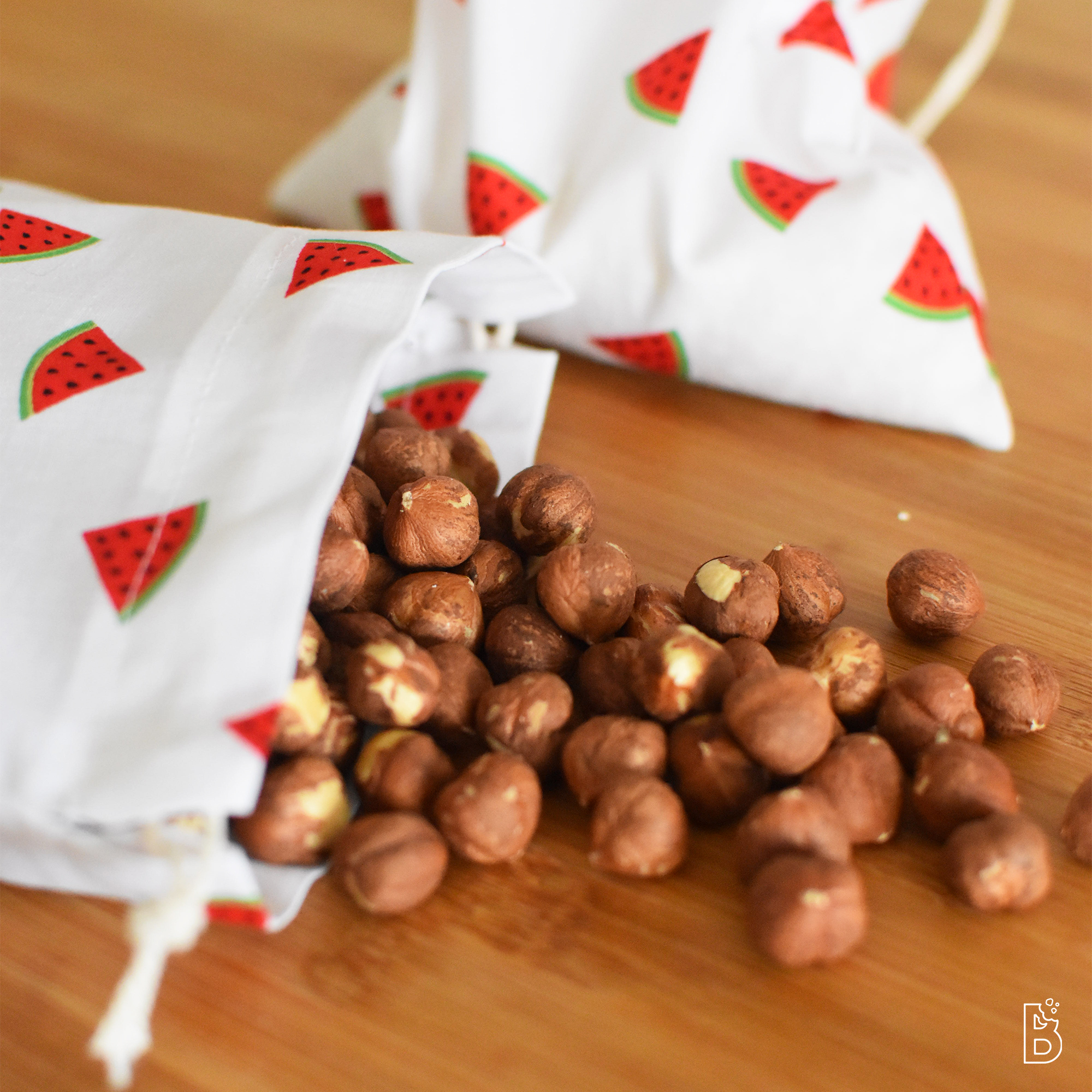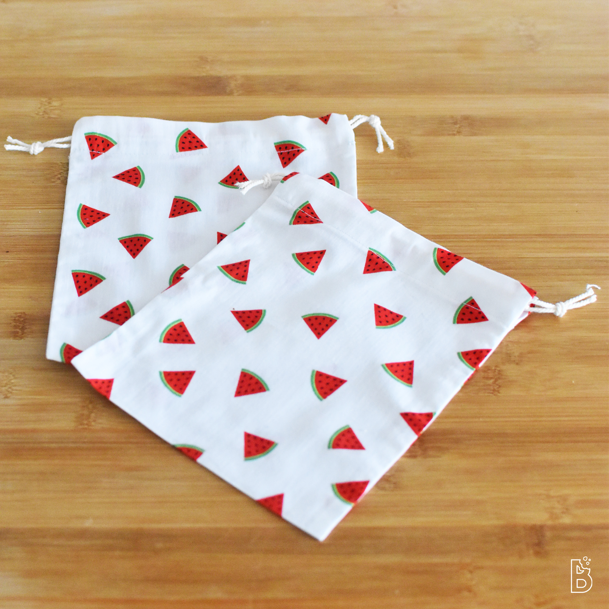 Pour vous aider dans votre démarche zéro déchet la consommation en vrac est la clé ! Ce lot de 2 sacs à vrac en coton motif pastèque vous servira à vous servir en pâtes, riz, fruits secs et bien d’autres.